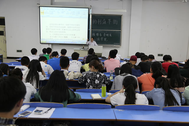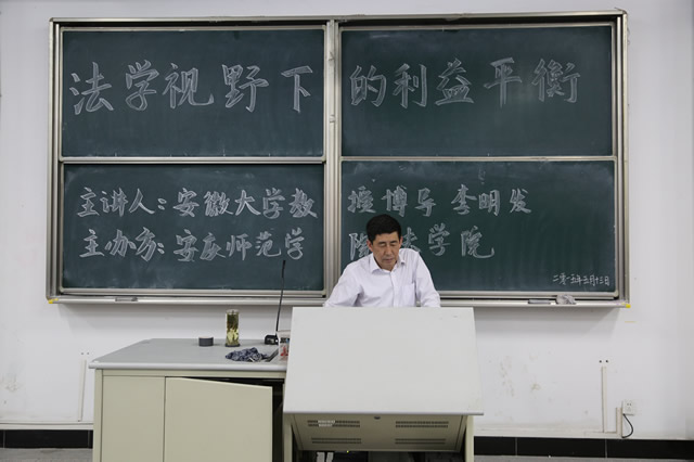 5月13日晚,安徽大学研究生院常务副院长、博士生导师李明发教授应邀来141jj 作了题为“法学视野下的利益平衡”的学术报告。141jj 党总支书记詹德全、副院长朱留虎和法学专业师生100多人参加了报告会,报告会由141jj 院长焦少林教授主持。