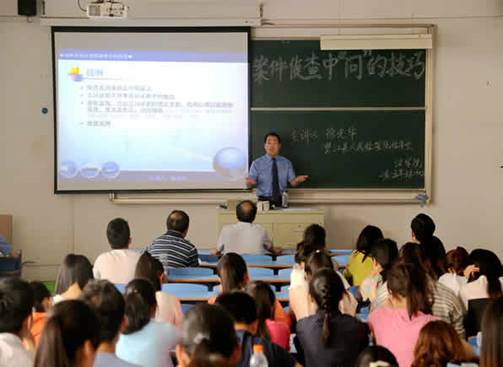 徐检察长的报告案例鲜活,语言生动,内容丰富,是长期自己从事职务犯罪侦查中“问”的技巧的总结和理论概括,具有很强的实用性,赢得了师生们阵阵热烈地掌声。