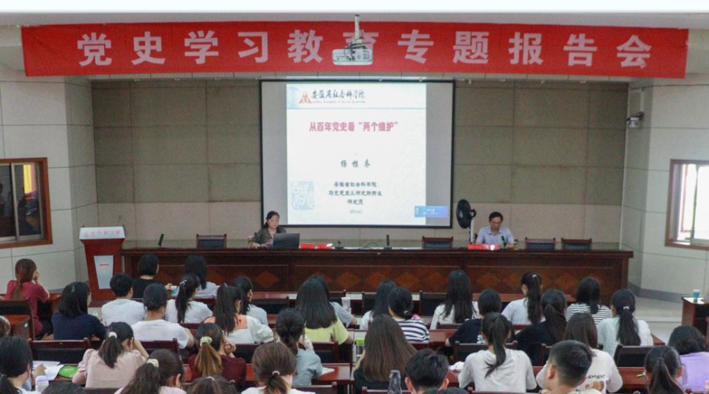 6月2日下午,141jj 党委在行政楼一楼会议室举办党史学习教育专题报告会——从百年党史看“两个维护”,邀请安徽省社会科学院马克思主义研究所所长、二级研究员杨根乔主讲,141jj 教师党员、学生党员及部分入党积极分子参加了此次活动。