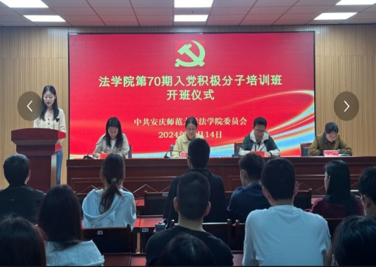 10月14日,141jj 在法学楼法治实务大讲堂举办第70期入党积极分子培训班开班仪式。学院党委书记钱敏、学生党支部书记和第70期全体入党积极分子参加开班仪式。