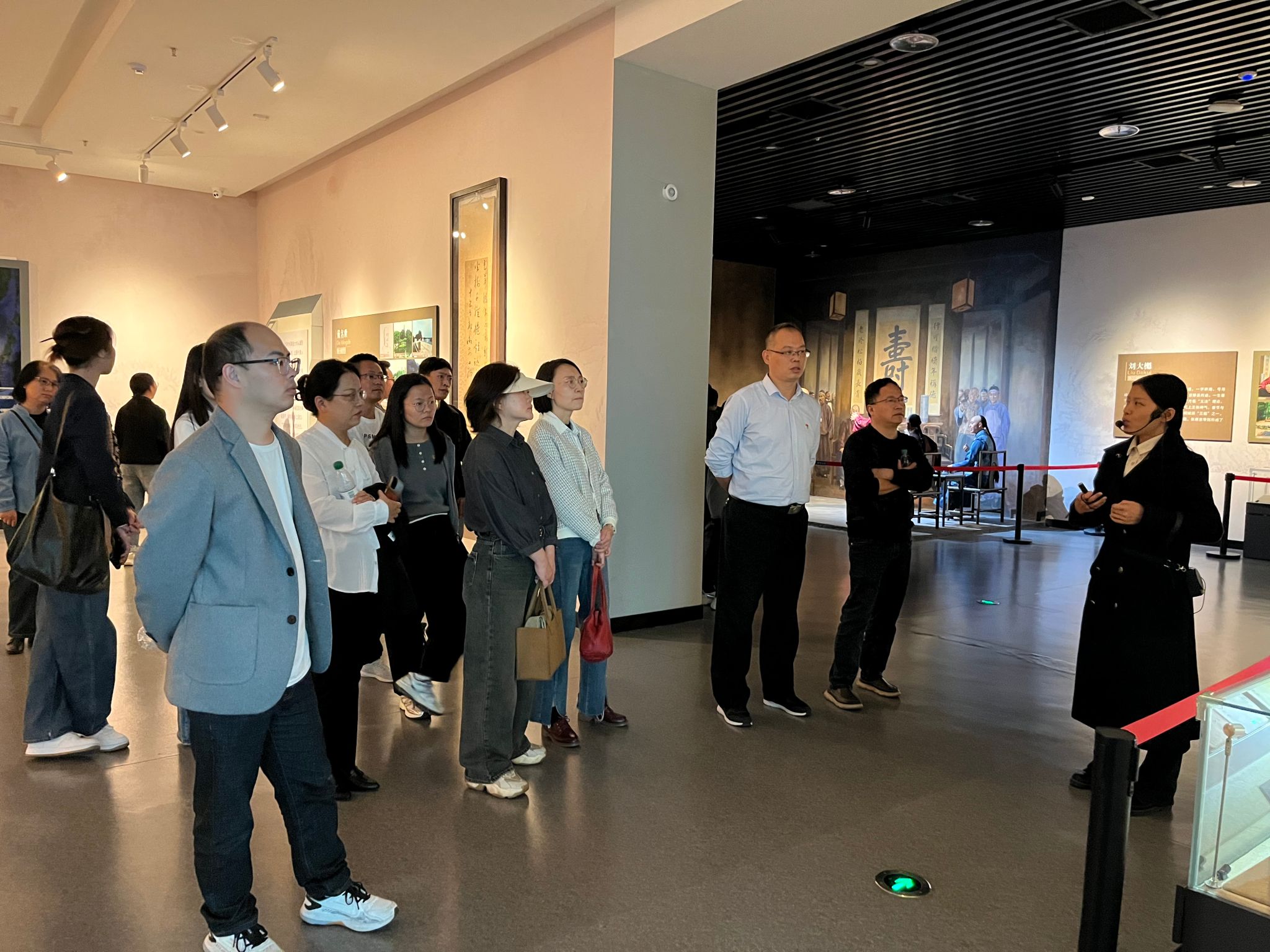在讲解员的引领下,全体党员集体参观了桐城文庙和桐城文化博物馆。桐城文庙是为纪念中国古代伟大的思想家、教育家孔子而建的一处文化圣地。全体党员依次参观了文庙门楼、棂星门、泮桥、大成殿、东西两庑等地,深入了解了儒家文化的起源、发展与深远影响。桐城文化博物馆是一座集历史和艺术于一体的综合性博物馆。通过了解不同时代的人物故事,以及书影、陶器等藏品,感受“天下文章出桐城”的人文气息和“抵天柱而枕龙眠”的厚重历史,深入了解了各个时期的桐城派文化和杰出代表人物,感悟桐城崇文重教的优良传统、勤劳务实的人文精神、廉洁礼让的良好家风。