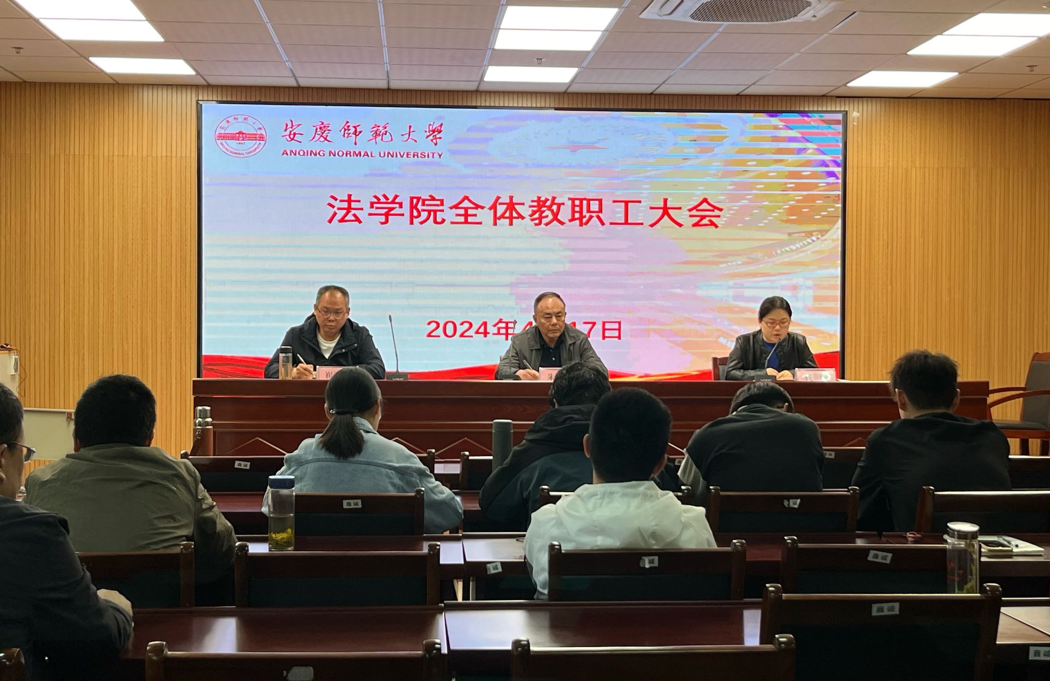 4月17日,141jj 召开全体教职工会议,进一步推进审核评估工作,布置近期学院工作安排。学院全体教职工参加会议。