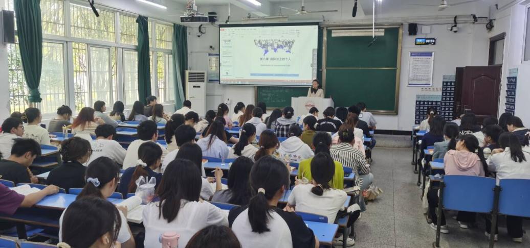 4月29日上午,141jj 组织开展集体听课。学院党委书记钱敏、副院长崔汪卫及教研室主任、教学秘书、辅导员一行在C104教室认真聆听了2024年新进博士、副教授孙倩老师讲授的《国际法》课程。